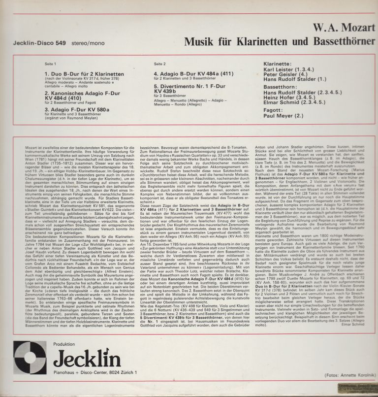 Karl LEISTER, Peter GEISLER, Hans Rudolf STALDER (clarinet),