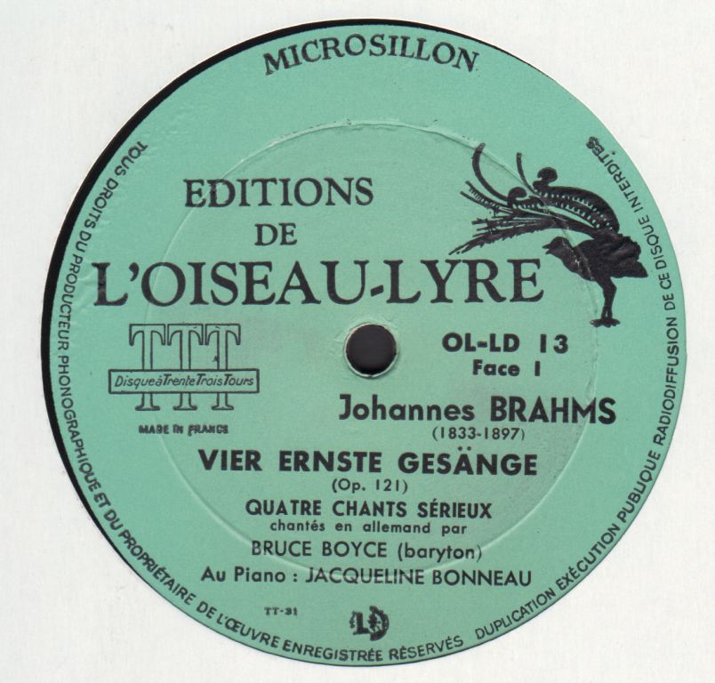 Brahms: 4 serious songs. Bruce BOYCE (baryton),